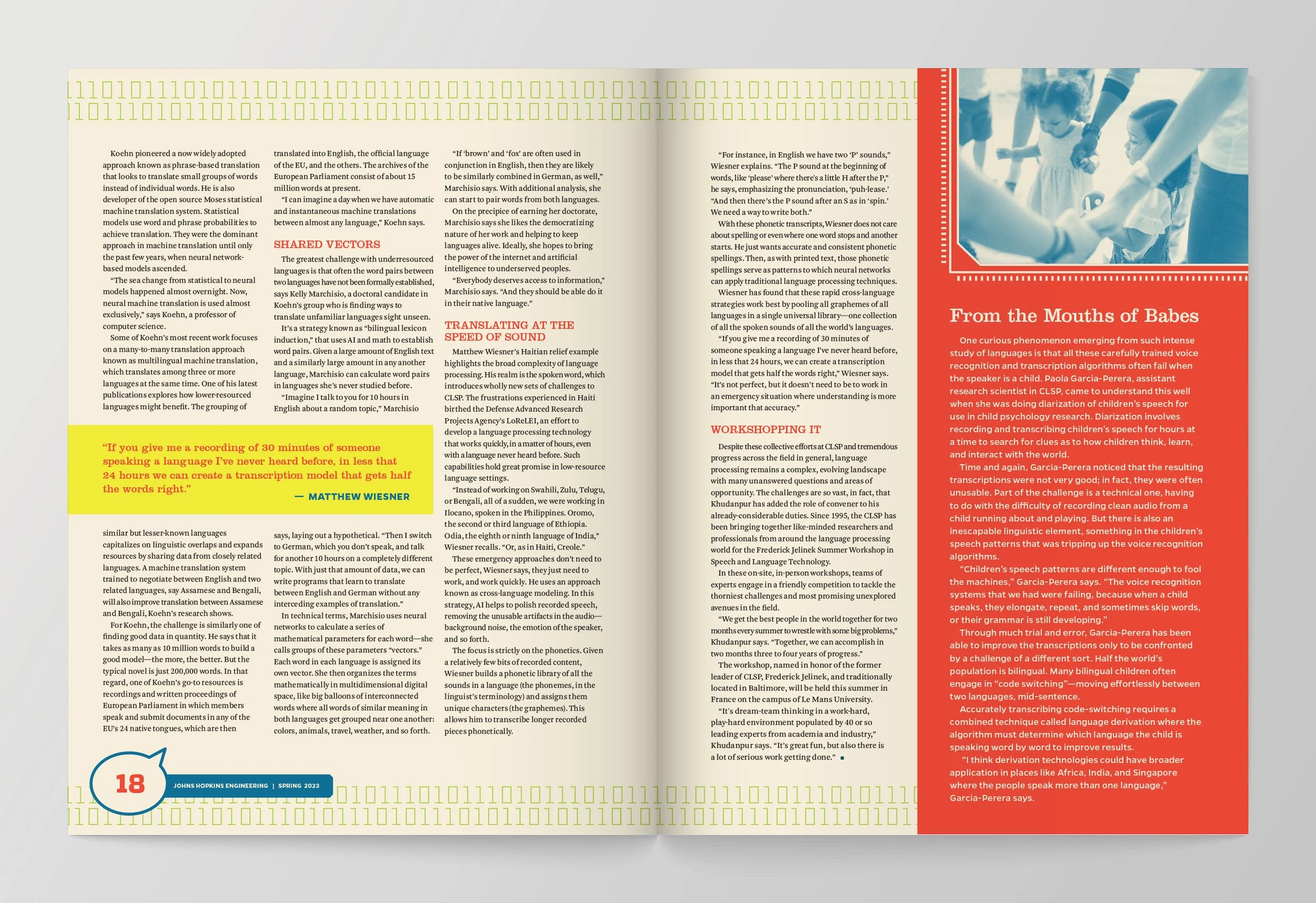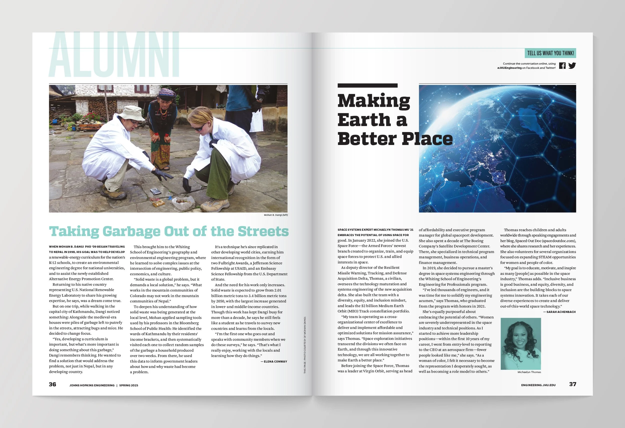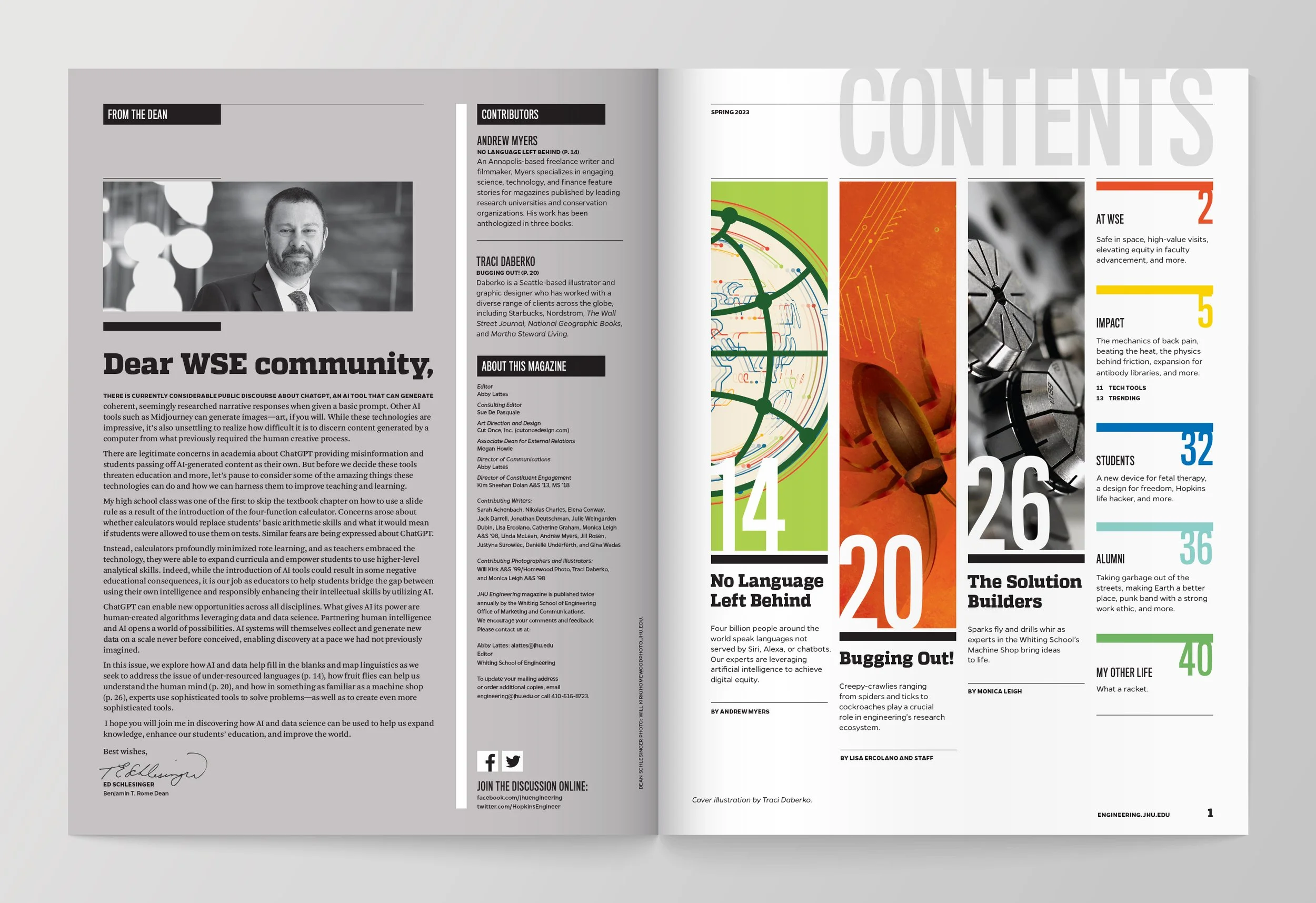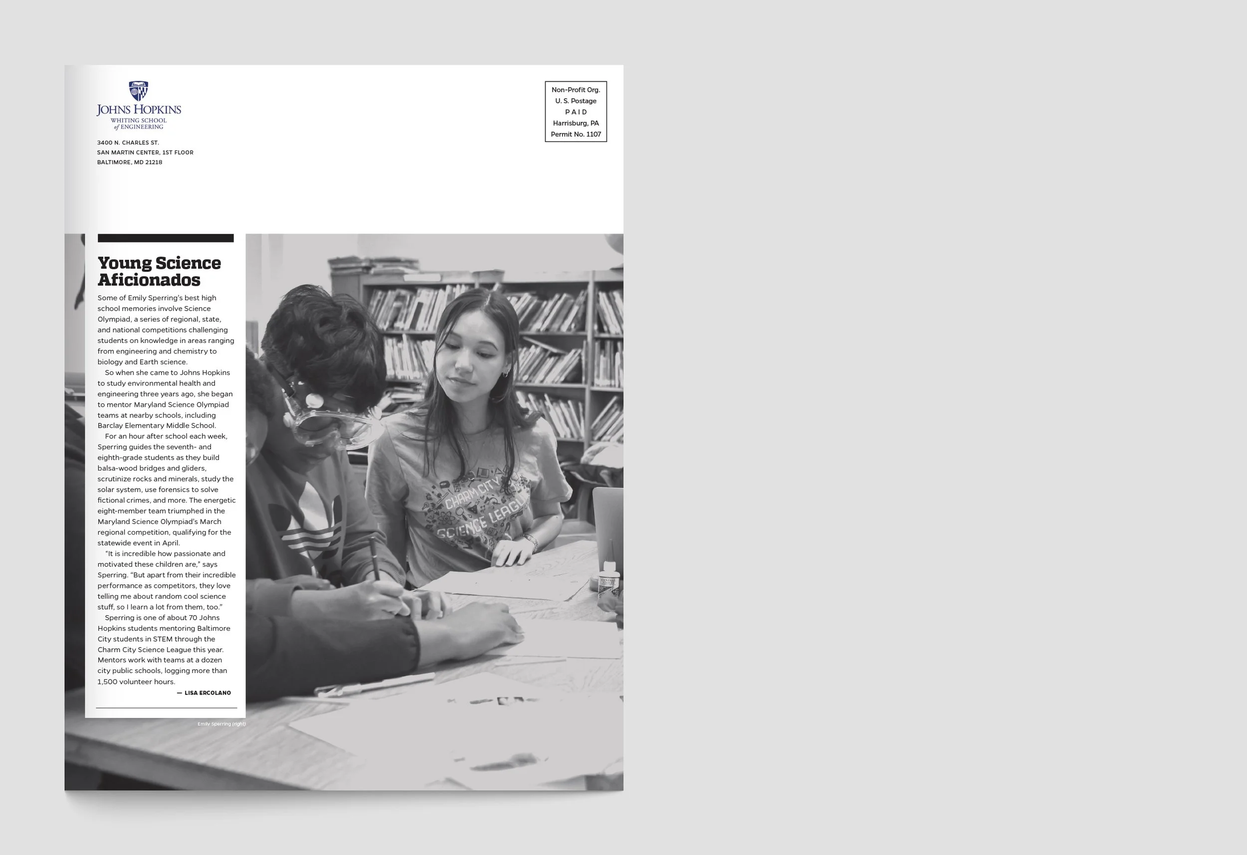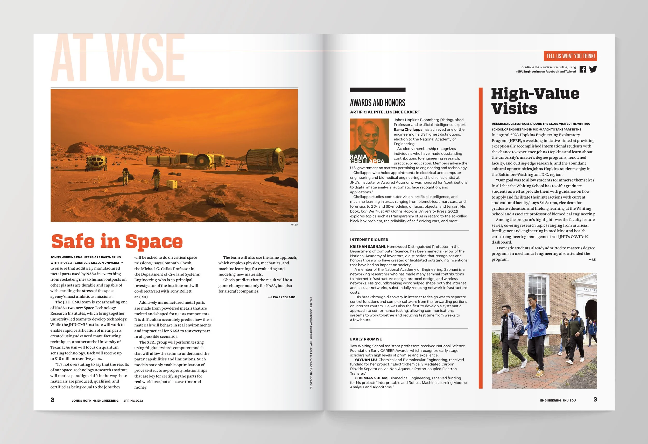 With a Circulation of 45,000, JHU Engineering showcases the leadership and global impact of the Johns Hopkins Whiting School faculty, students and alumni as they innovate to solve challenging societal problems. The editorial team does this by sharing stories about their educational activities, groundbreaking research, translational work, and accomplishments.