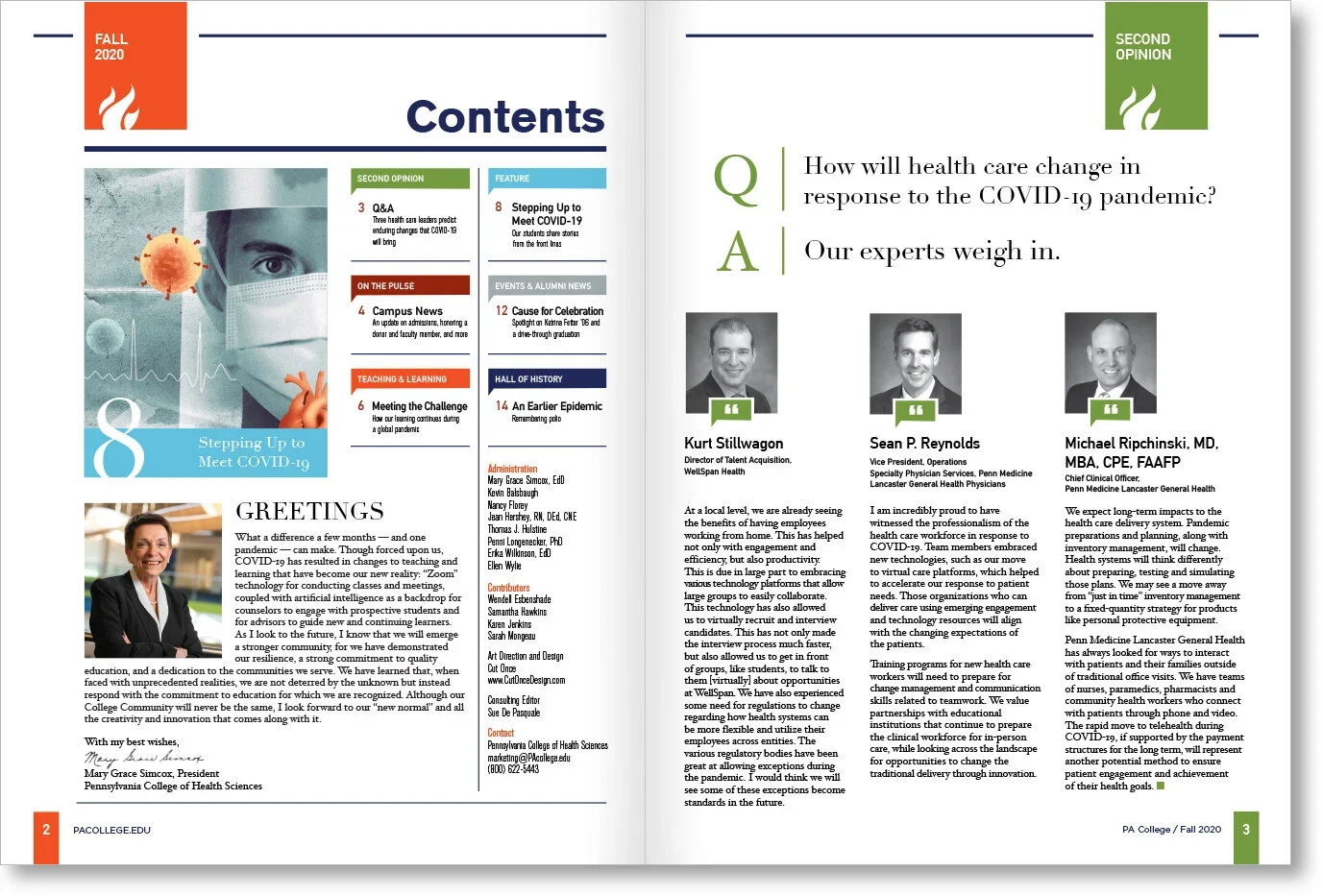 As award-winning magazine professionals with broad experience in corporate and university publications, we know firsthand the “pain points” editors face and how to overcome them. Rather than taking a cookie cutter approach, we listen and learn about you, your staff, and your organization. The result? Compelling editorial and design solutions that capture your organization’s unique personality. Solutions that are tailored to your budget and sustainable with your staffing. Whether you’re in the market for a complete redesign or just want to solve a particular “pain point” in your creative process, we’re here to help.